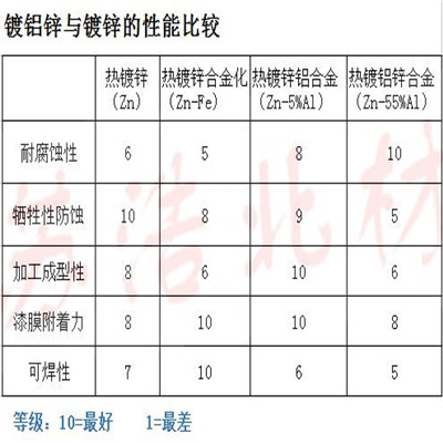 由于鋼板受潮即會產生氧化銹蝕,故必須在表面加 上防腐保護層,一般采用的防腐鍍層分為熱浸鍍鋅Zn及熱浸鍍鋁鋅合金Al-Zn(鋁鋅合金成分為鋁55%、鋅43.5%及硅1.5%,簡稱55%Al-Zn)。資料顯示,55%鍍鋁鋅綜合防腐能力為相同厚度鍍鋅的4倍。