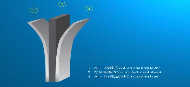鍍鋁鋅表面呈特有的光滑、平坦和華麗的星花,基色為銀白色。特殊的鍍層結構使其具有優良的耐腐蝕性。鍍鋁鋅板正常使用壽命可達25a,耐熱性很好,可用于315℃的高溫環境;鍍層與漆膜的附著力好,具有良好的加工性能,可以進行沖壓、剪切、焊接等;表面導電性很好。