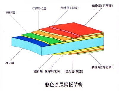 彩鋼板基本概念:在連續機組上以冷軋帶鋼,鍍鋅帶鋼(電鍍鋅和熱鍍鋅)為基板,經過表面預處理(脫脂和學處理),用輥涂的方法,涂上一層或多層液態涂料,化經過烘烤和冷卻所得的板材即為涂層鋼板。由于涂層可以有各種不同的顏色,習慣上把涂層鋼板叫做彩色涂層鋼板。