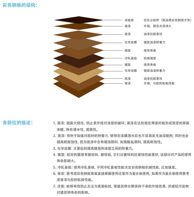 彩涂板,業內又稱彩鋼板,彩板。彩色涂層鋼板是以冷軋鋼板和鍍鋁鋅或鍍鋅鋼板為基板,經過表面預處理(脫脂、清洗、化學轉化處理),以連續的方法涂上涂料 (輥涂法),經過烘烤和冷卻而制成的產品。