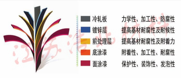 彩鋼板以冷軋鋼板為基材,對其進行脫脂、磷化和鉻酸鹽處理后,在氮氣的保護下進行雙面熱鍍鋅,再施以易于底漆牢固黏附的化學轉化膜,