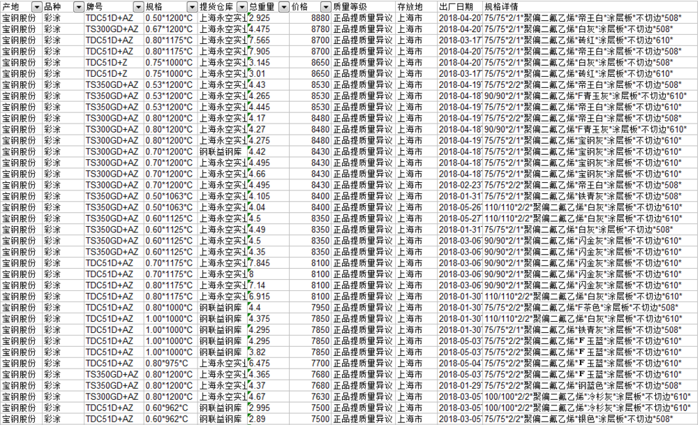 以下為部分彩涂基礎詳情參考
