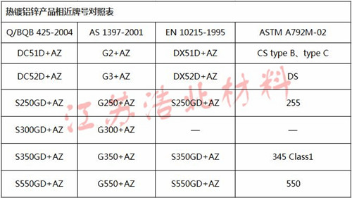 Q/BQB 425-2004 AS 1397-2001 EN 10215-1995 ASTM A792M-02 JIS G 3321:1998 ISO 9364-2001 DC51D+AZ G2+AZ DX51D+AZ