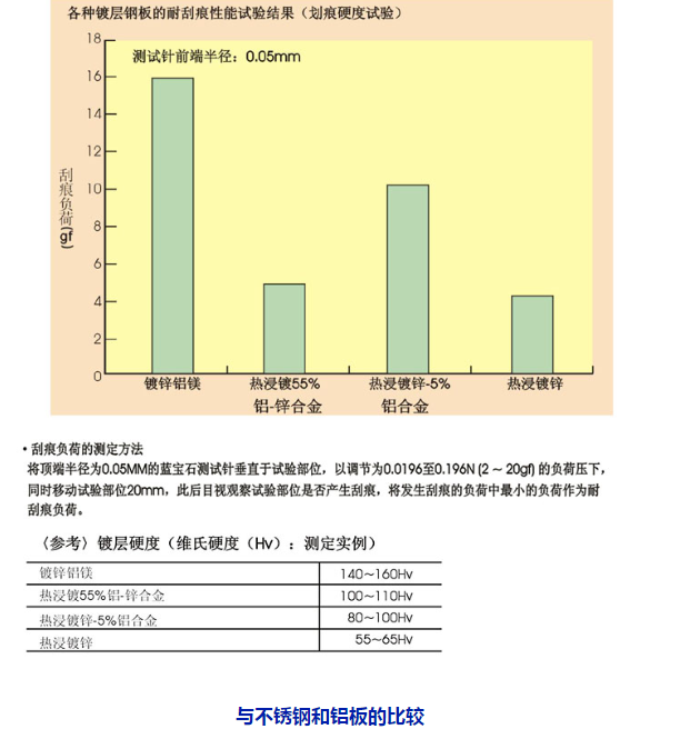 它有幾大優點: 一、防銹性能是鍍鋅板10-20倍(達到不銹鋼標準) 二、降低成本(一般比不銹鋼價格便宜40%) 三、切口耐蝕性能好(切口能自動修復,防止紅銹產生,最大的特點之一) 四、加工性能很好(由于有著優異的耐磨和耐刮痕性能,能適應各種加工) 五、環保(通過國際多項環保測試) 六、厚度強度鍍鋅量都可以調節