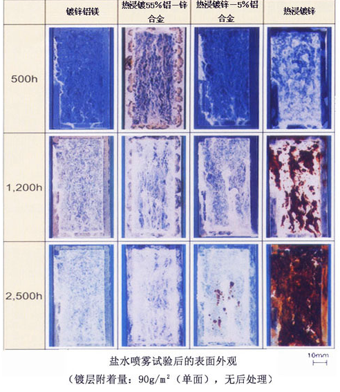 鍍鋁鎂鋅與鍍鋅鋁鎂、鍍鋁鋅、鍍鋅對比